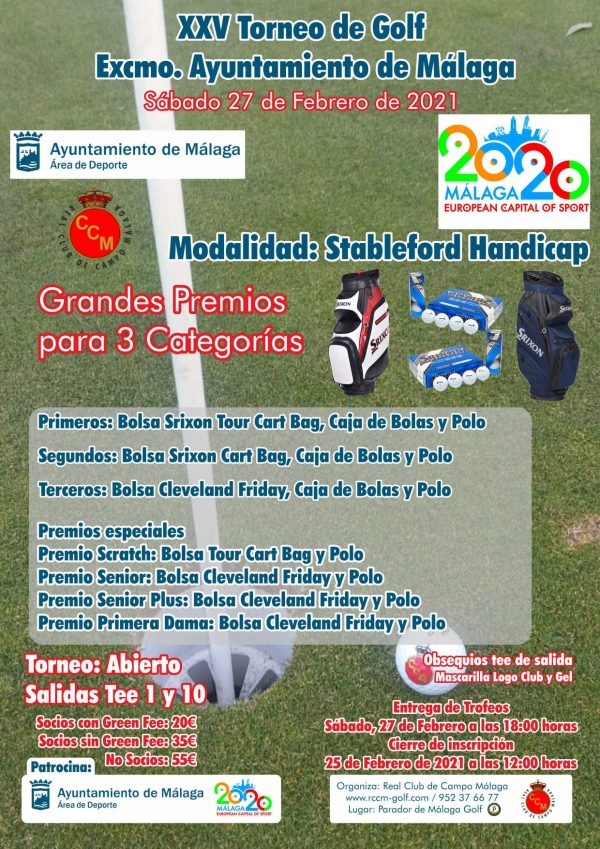 El campo del Parador de Málaga Golf será escenario este sábado del XXV Torneo Ayuntamiento de Málaga. Las inscripciones se han cerrado hoy jueves con éxito de participación y ha cubierto su cupo máximo de 132 participantes en este prestigioso campeonato que discurrirá por las calles del campo más antiguo de Andalucía, siguiendo todas las medidas sanitarias establecidas Este torneo está organizado por el Real Club de Campo de Málaga y cuenta con el Patrocinio del Consistorio, a través del Área de Deporte.